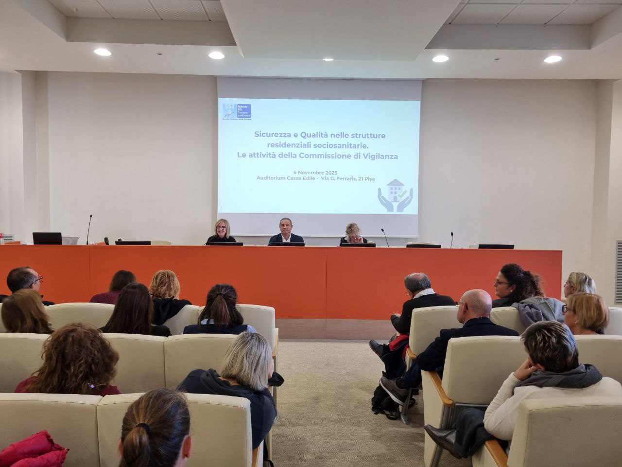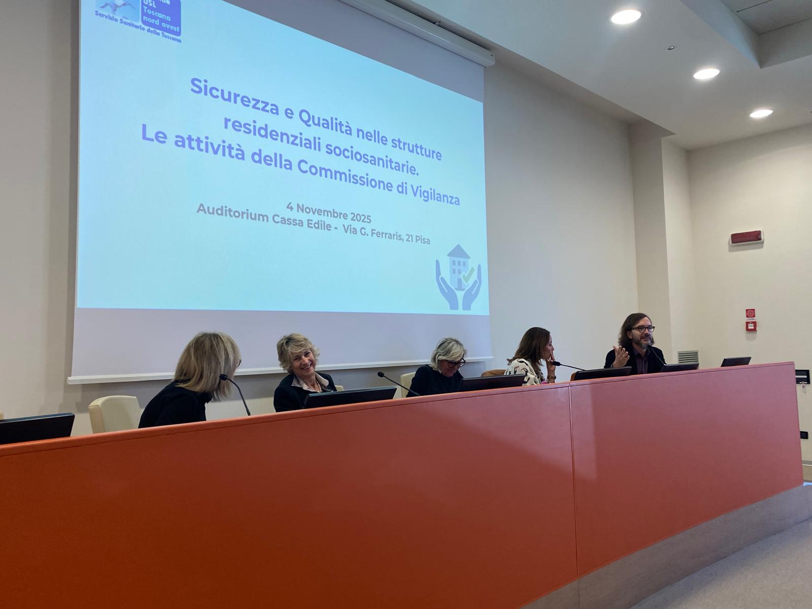 4 novembre 2025 – La rilevanza del ruolo delle commissioni multidisciplinari di vigilanza per la sicurezza e la qualità nelle strutture residenziali socio-sanitarie. E’ stato evidenziato nel corso dell’evento che si è svolto oggi (4 novembre) nell’auditorium della Cassa Edile a Pisa, con una grande partecipazione degli operatori dell’Azienda USL Toscana nord ovest, ma anche dei soggetti esterni afferenti a tutte le zone.