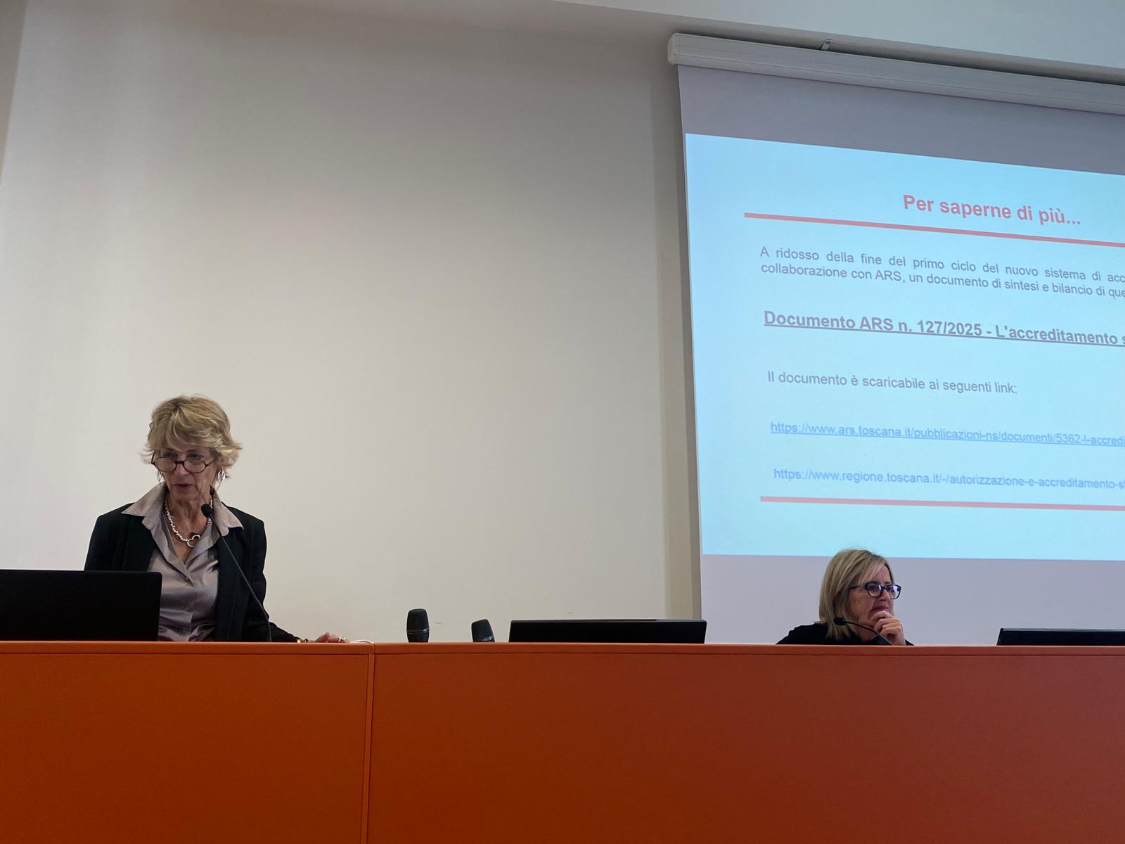 (direttore unità operativa Sicurezza del paziente), Luciana Galeotti (funzionaria Regione Toscana – responsabile autorizzazione e accreditamento del sistema sociale integrato) e Chiara Bartolini (coordinatrice gruppo tecnico regionale di valutazione accreditamento del sistema sociale integrato).