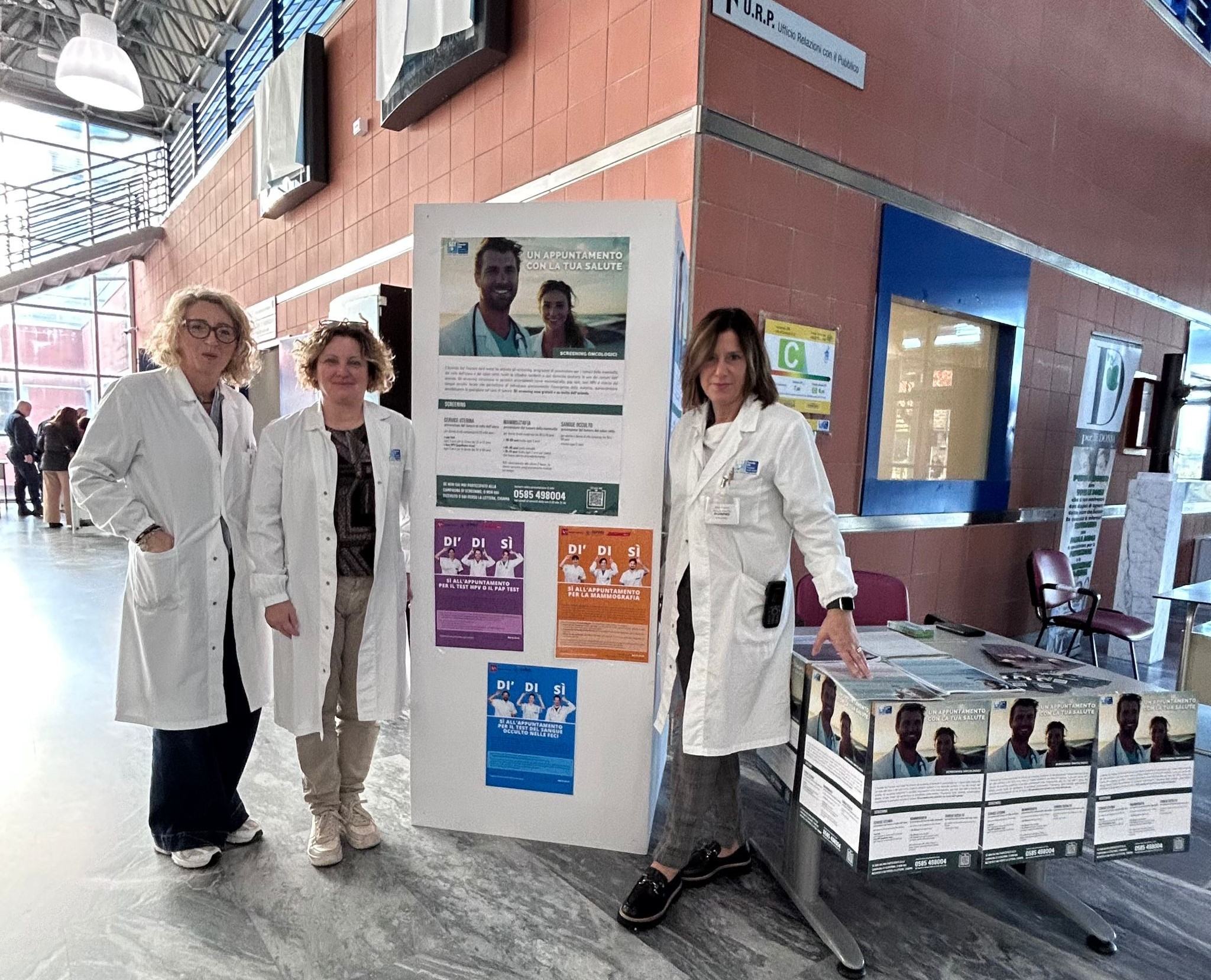 In allegato alcune immagini delle iniziative per promuovere gli screening oncologici in alcune strutture sanitarie dell’Asl.