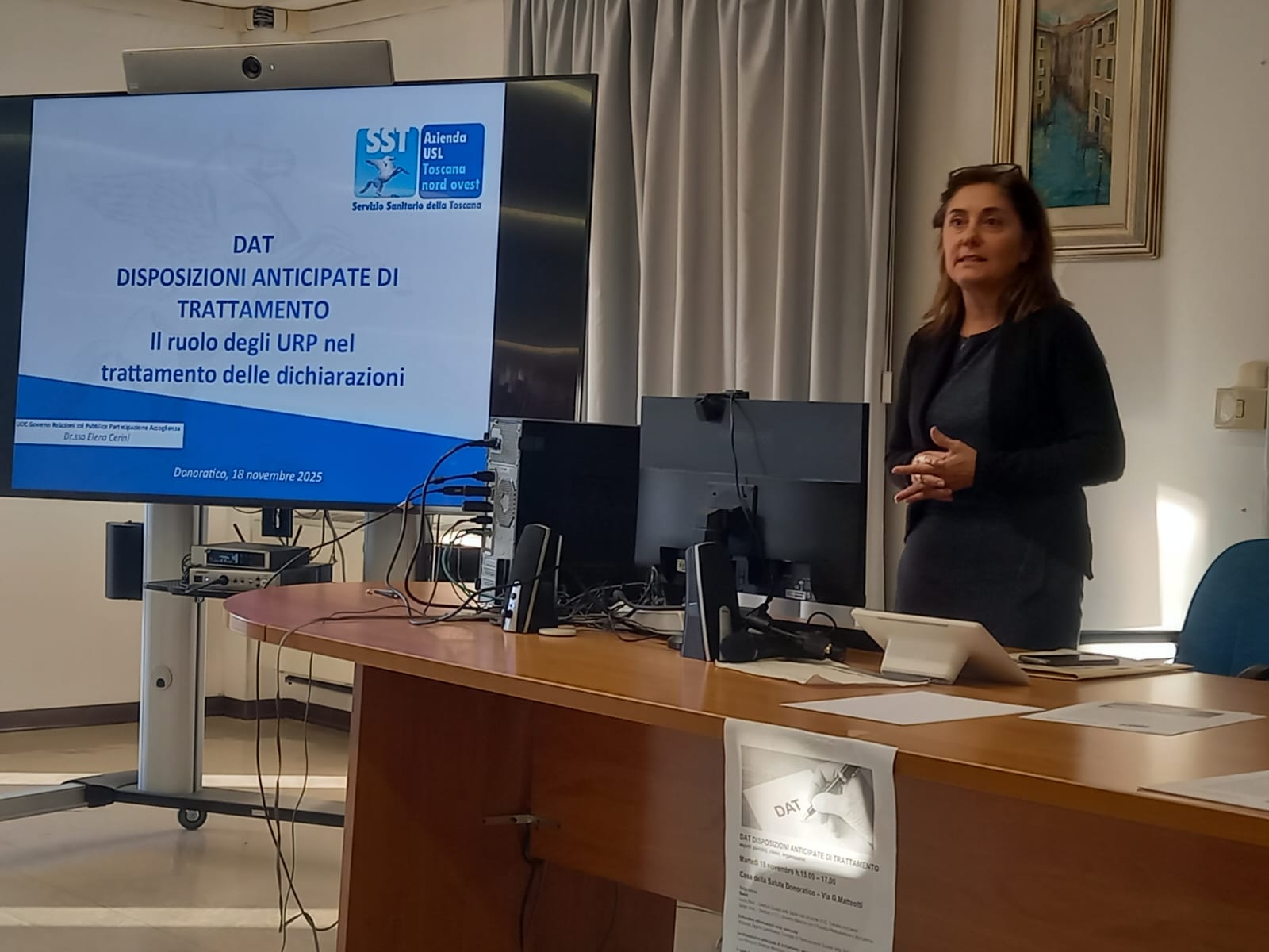 DONORATICO, 19 novembre 2025 – Si è concluso con una partecipazione attenta e numerosa l’incontro dedicato alle Disposizioni Anticipate di Trattamento (DAT), ospitato martedì 18 novembre nella Casa della Salute di Donoratico. Presenti molti cittadini, ma anche associazioni, medici di famiglia e persone direttamente interessate al tema, confermando quanto il bisogno di informazione e confronto su questo argomento sia particolarmente sentito sul territorio.