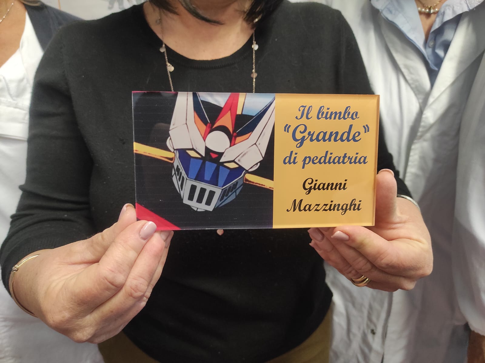Anche Valeria, moglie di Gianni Mazzinghi, ha portato la sua testimonianza, evidenziando la forza con cui ha vissuto le cure e il rapporto speciale con il reparto: “Gianni affrontava ogni terapia con il sorriso e trovava sempre un modo per dare coraggio ai bambini che incontrava. Questo reparto lo ha visto crescere e ha accolto anche la nascita di nostro figlio Francesco, che tutti chiamavano ‘il bimbo del bimbo di Pediatria’. Era appassionato di robot, com’era naturale per un ragazzo cresciuto negli anni Ottanta, e amava giocare con il suo cognome: il suo simbolo era Mazzinga e abbiamo voluto inserirlo nella targa proprio per rappresentare la sua energia e la sua ironia”.