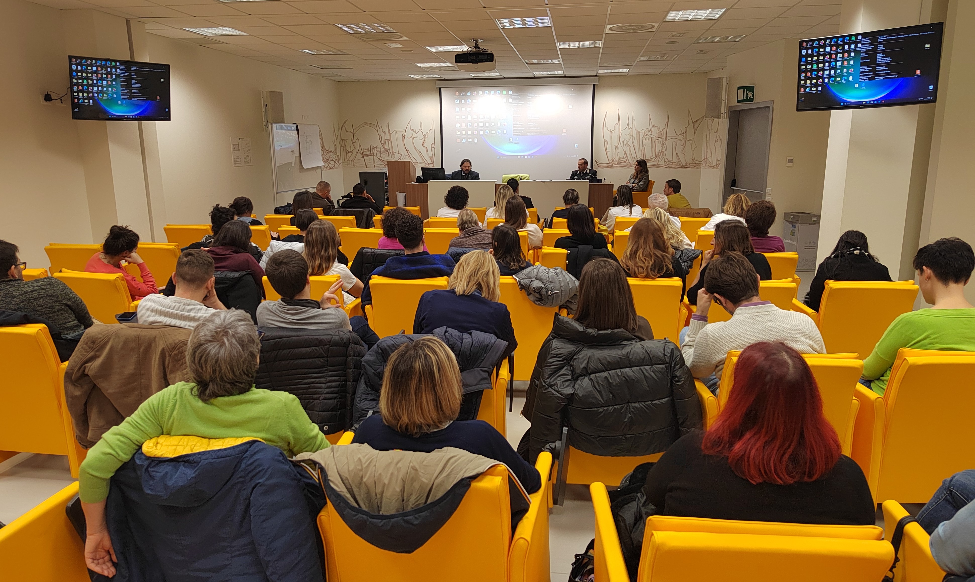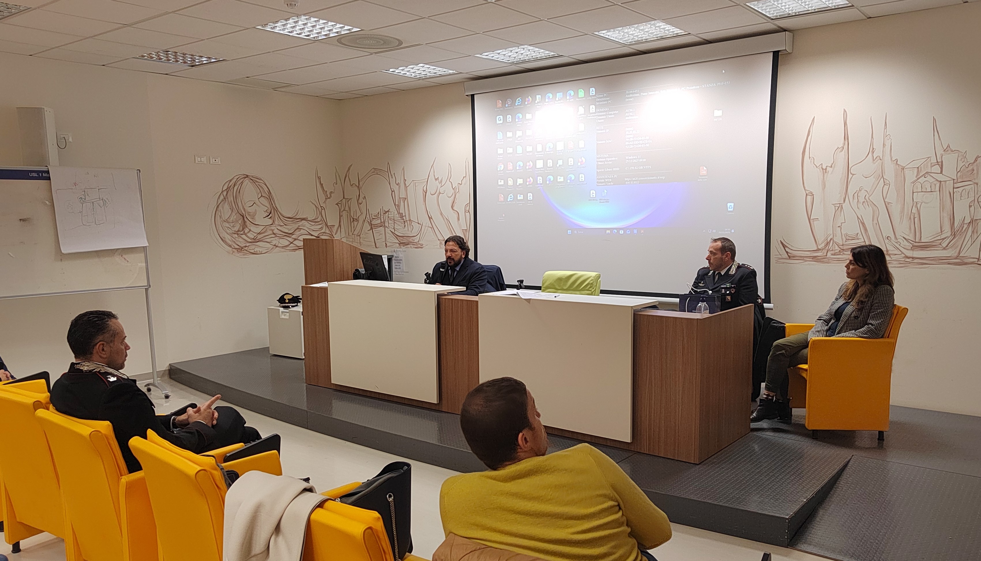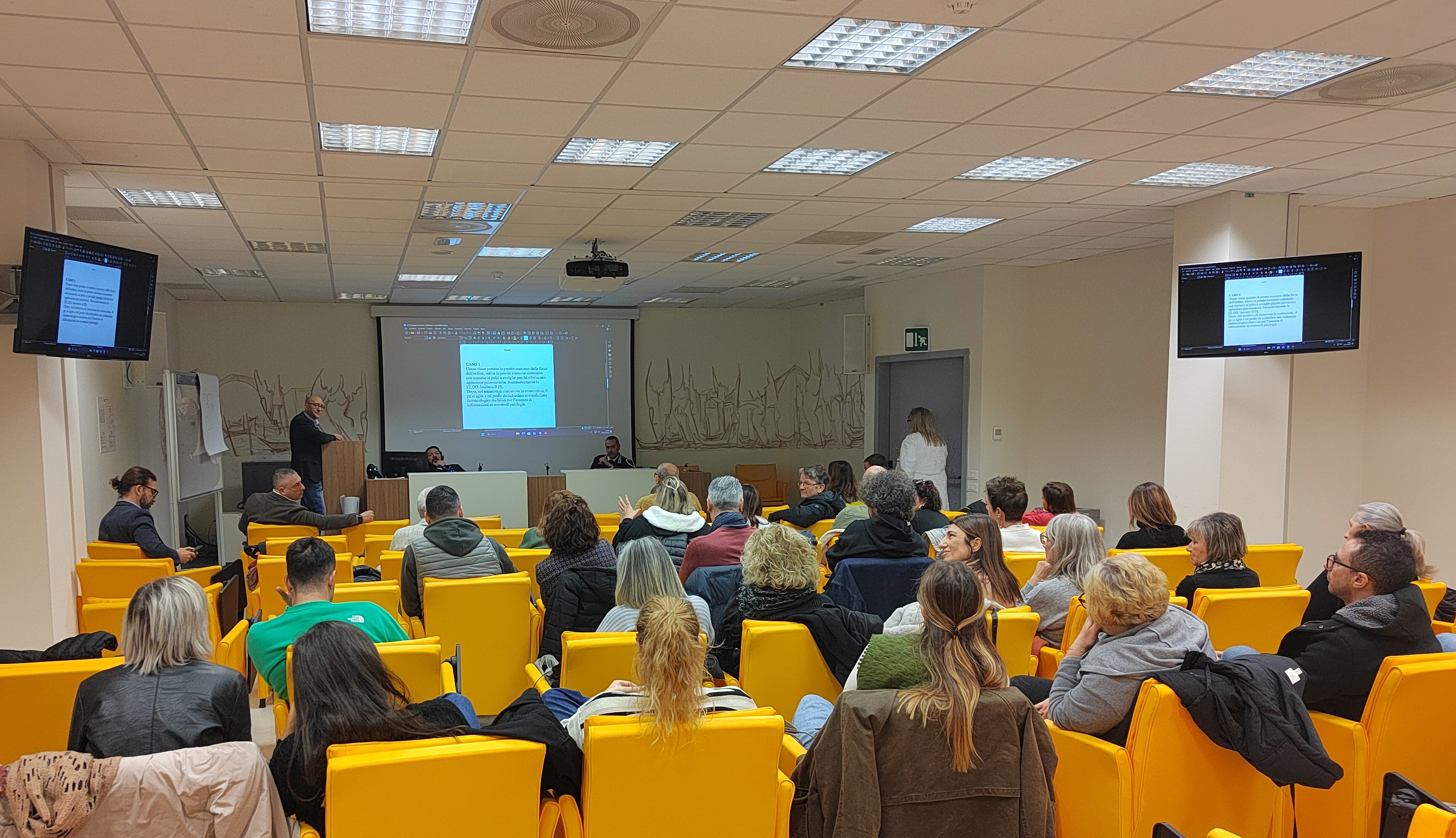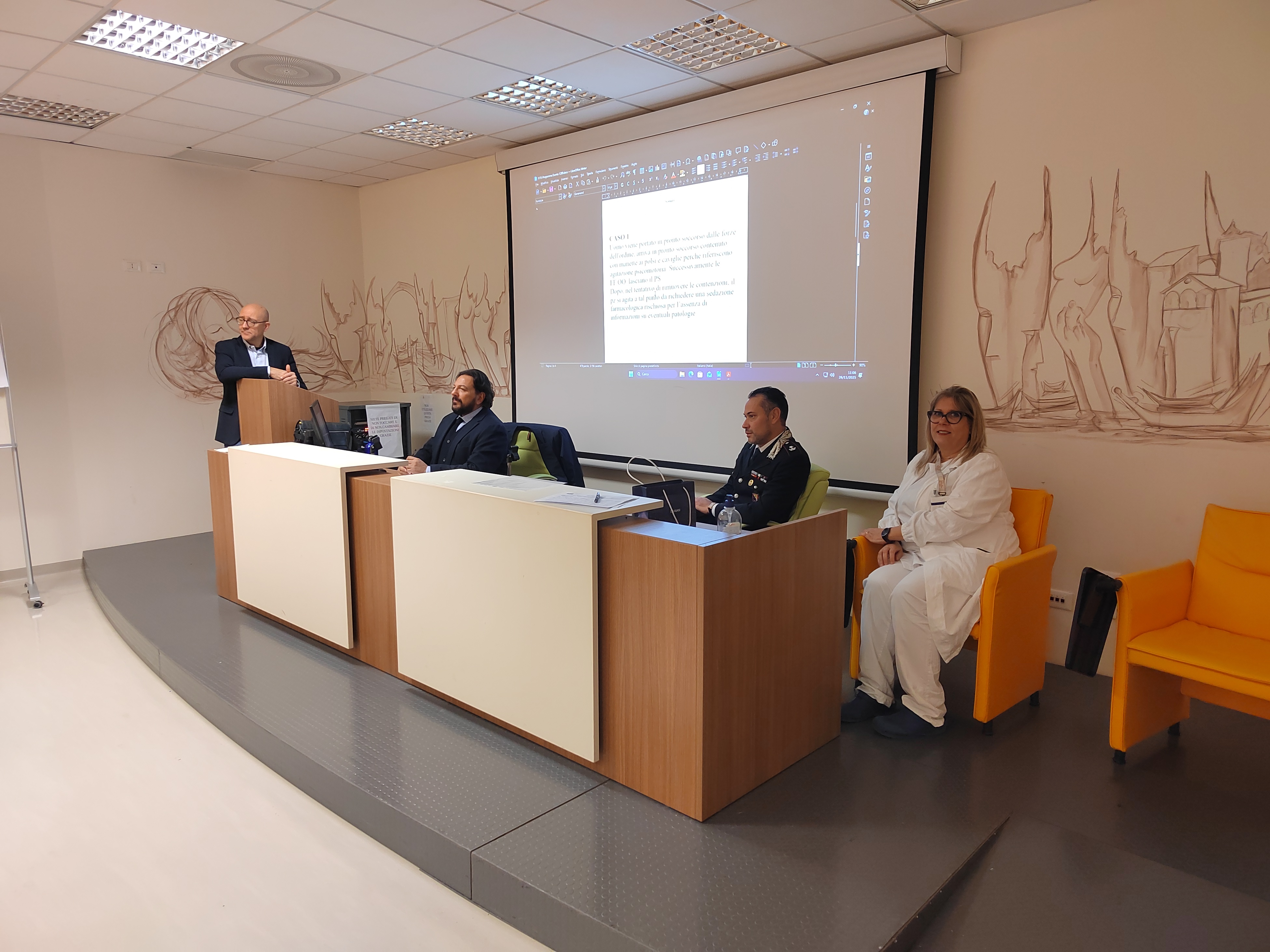 L’obiettivo era quello di individuare le criticità gestionali e organizzative delle situazioni di pericolo e di aggressione, attraverso l’analisi di scenari realmente avvenuti, sia da un punto di vista clinico che giuridico, con interazione diretta tra le Forze dell’ordine, in particolare nella figura del Vicequestore Antonio Dulvi Corcione e il personale del Pronto soccorso presente in sala. Hanno partecipato ai lavori anche il maresciallo ordinario della Guardia di Finanza Igor Bellè, il maggiore Alessandro Manneschi e l’appuntato Luigi di Somma dell’Arma dei Carabinieri.