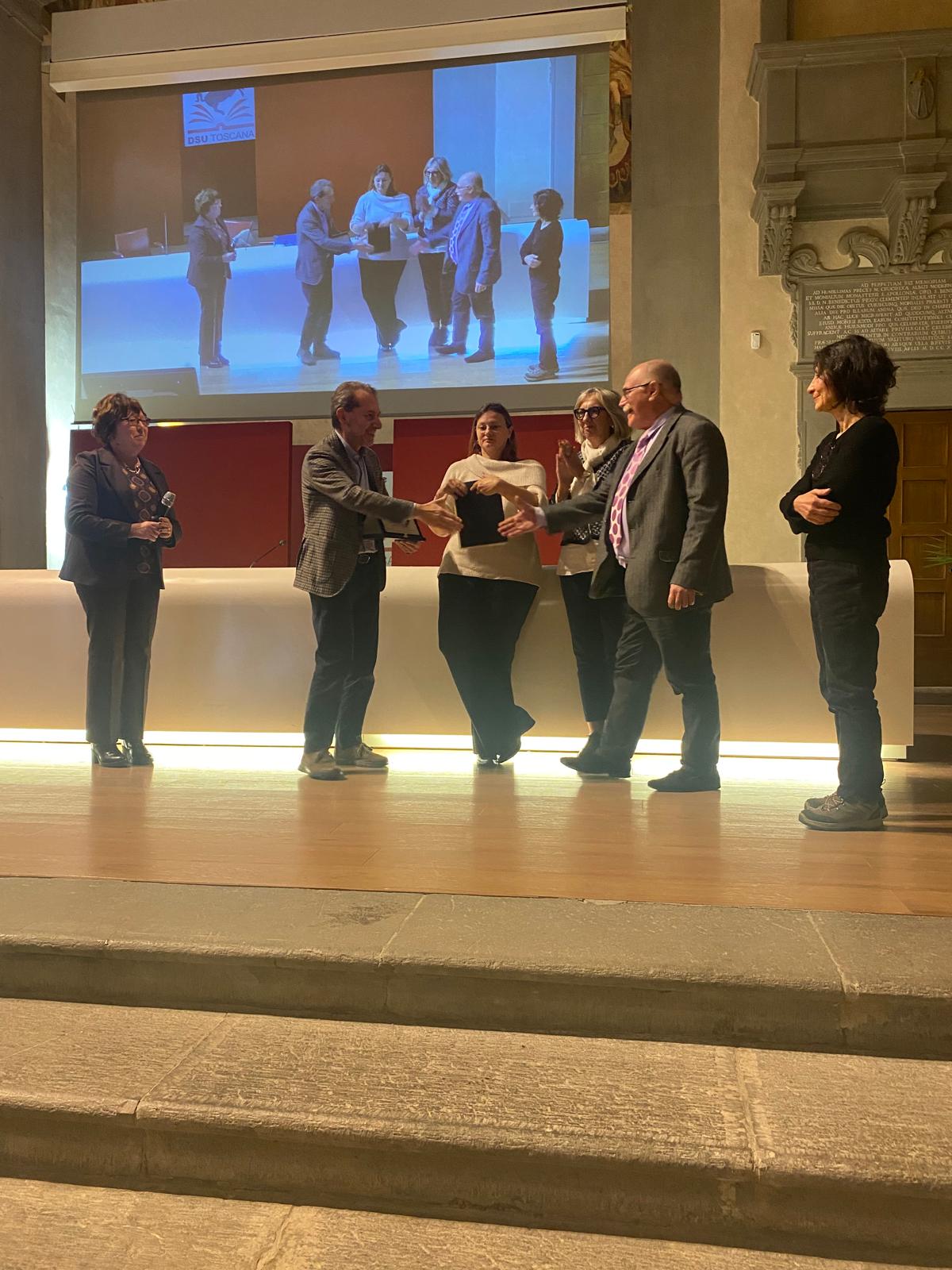 Nella foto il momento della consegna del premio da parte di Federico Gelli, direttore del dipartimento sanità, welfare e coesione sociale della Regione Toscana
