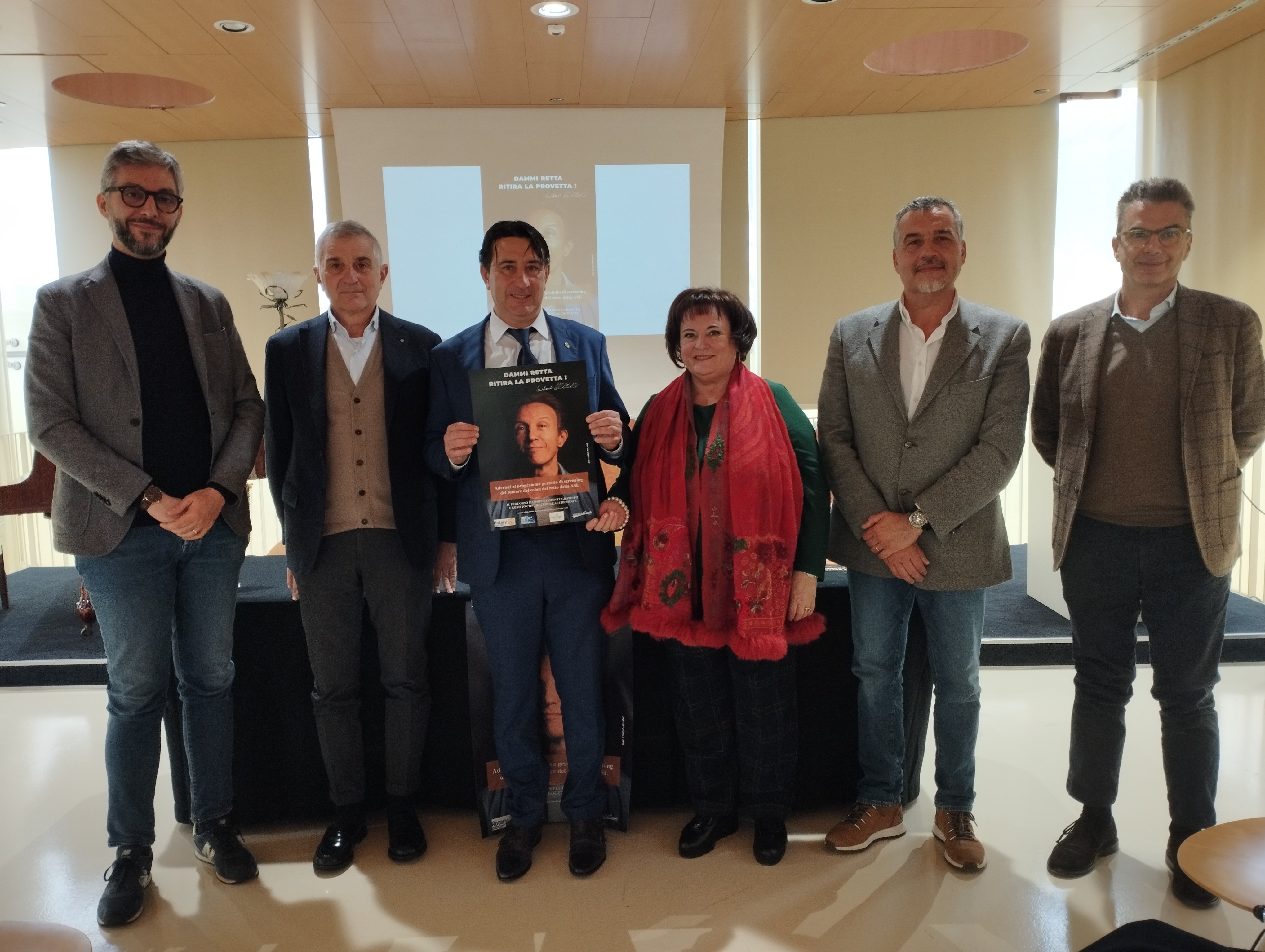 Presenti alla conferenza il presidente del Rotary Andrea Ferro, il past president Giulio Grossi e i promotori del progetto Giovanni Finucci, responsabile clinico screening colon retto della Asl Toscana nord ovest e Francesco Puggelli, direttore dell’ospedale San Luca di Lucca.