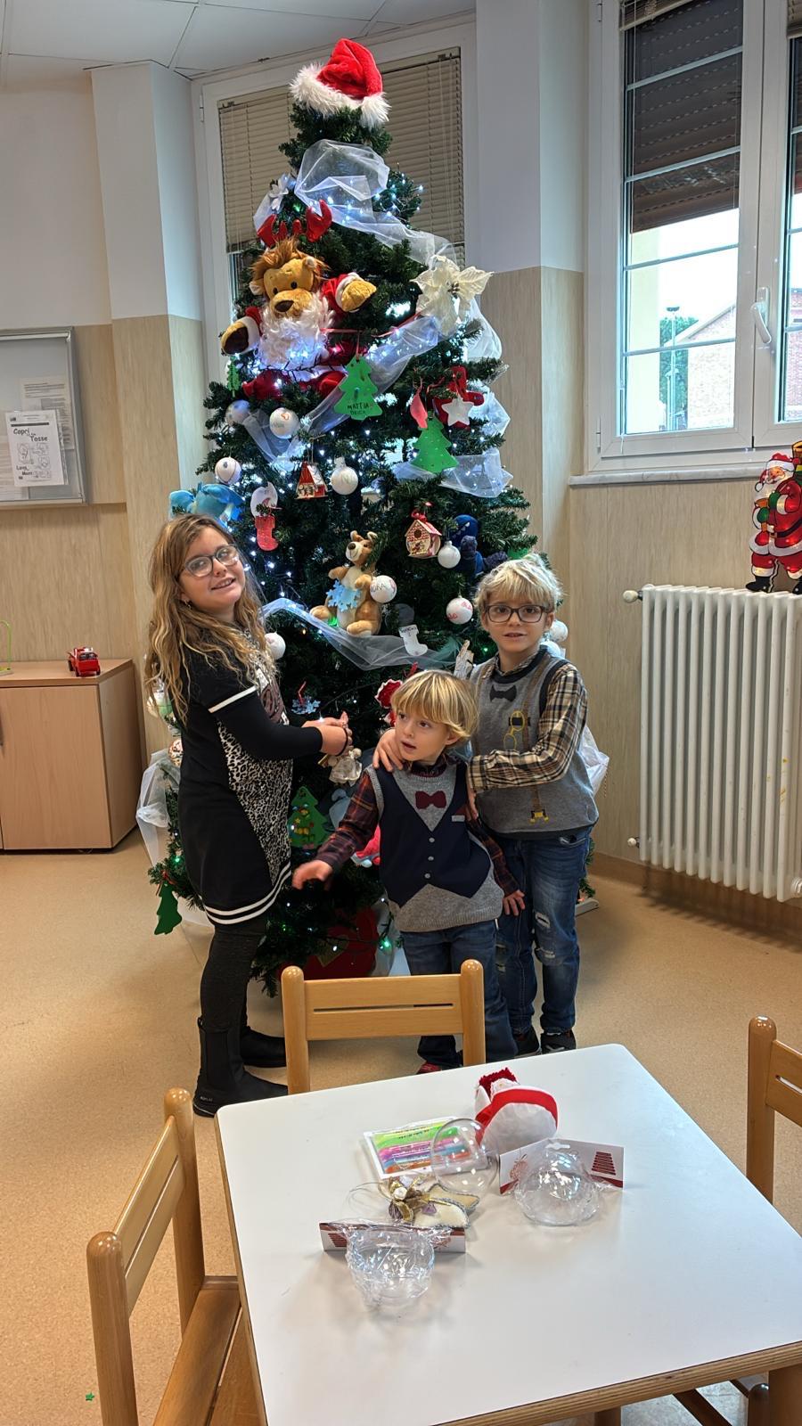 Nelle FOTO (autorizzate dai genitori) alcuni dei bambini che hanno contribuito alla realizzazione dell’albero.