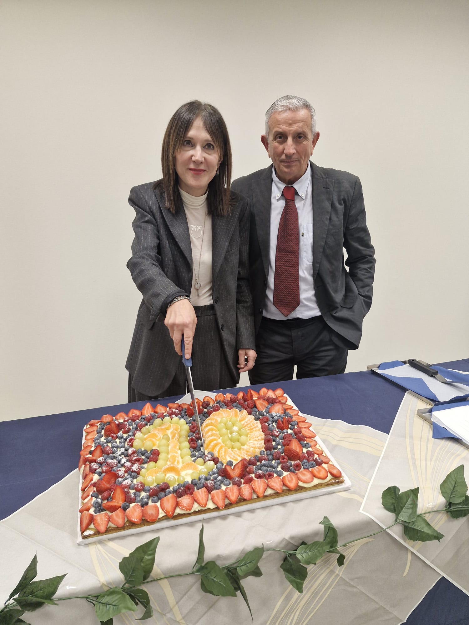 Conclusione della giornata con un simpatico momento conviviale, reso possibile da Gesat, con una grande torta celebrativa con il numero 10, tagliata dalla direttrice generale Maria Letizia Casani insieme al direttore dell’ospedale Giuliano Biselli.