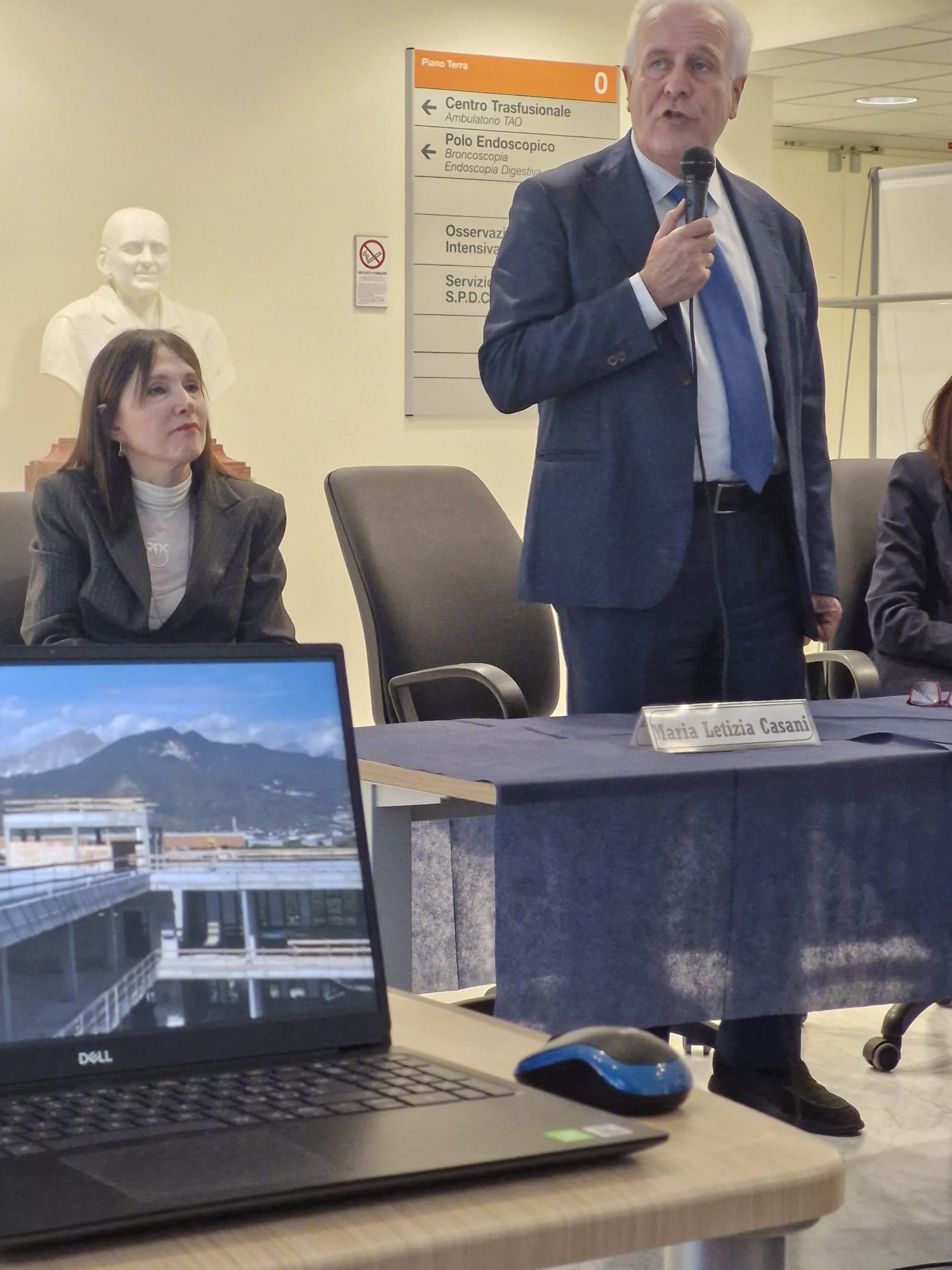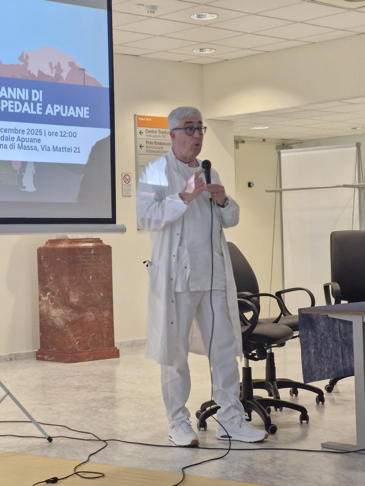 Voglio infine ringraziare Giuliano Biselli, direttore dell'ospedale Apuane, per avere guidato con professionalità e passione questo ospedale fin dal suo inizio, un ospedale che durante la pandemia da Covid ha saputo adattarsi velocemente, grazie alla struttura modulare, a una conversione immediata dei setting assistenziali.