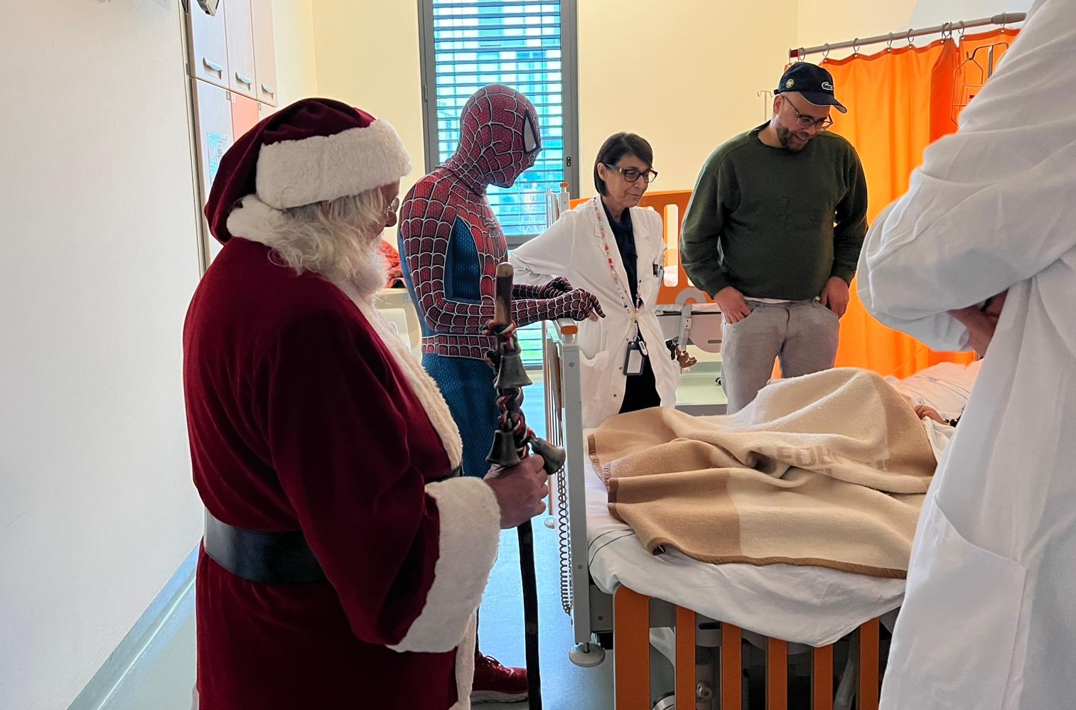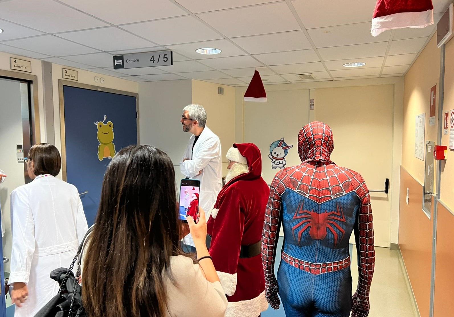 Lucca, 19 dicembre 2025 - Un gruppo di giocatrici e dirigenti della squadra Le Mura Spring Basketball, ha fatto visita oggi (19 dicembre) ai bambini ricoverati nel reparto di Pediatria dell’ospedale “San Luca”, insieme a Babbo Natale e Spiderman.