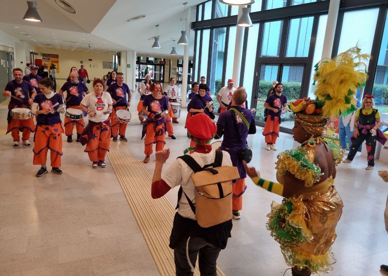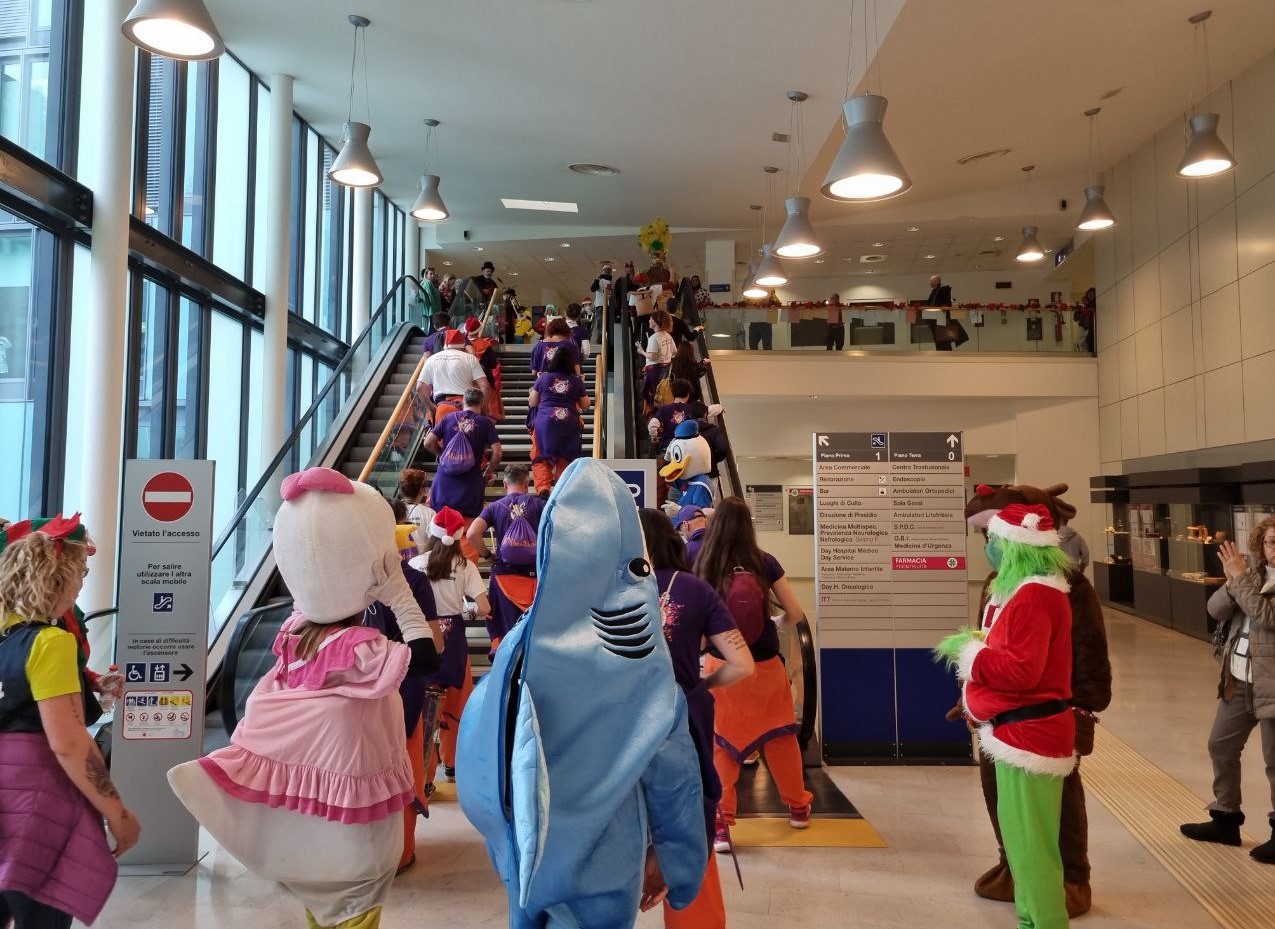Il coloratissimo gruppo si è recato nella Pediatria del “San Luca”, per la gioia dei piccoli ricoverati, mentre - prima e dopo la visita nel reparto pediatrico - ci sono stati trascinanti canti e balli nella hall dell’ospedale.