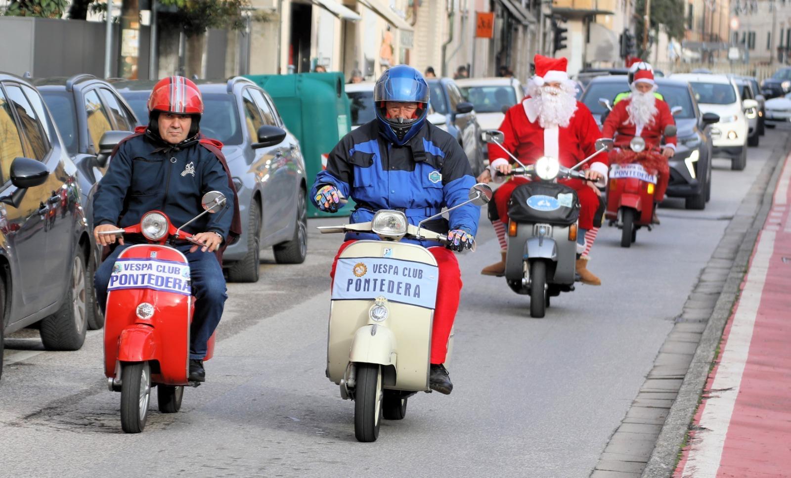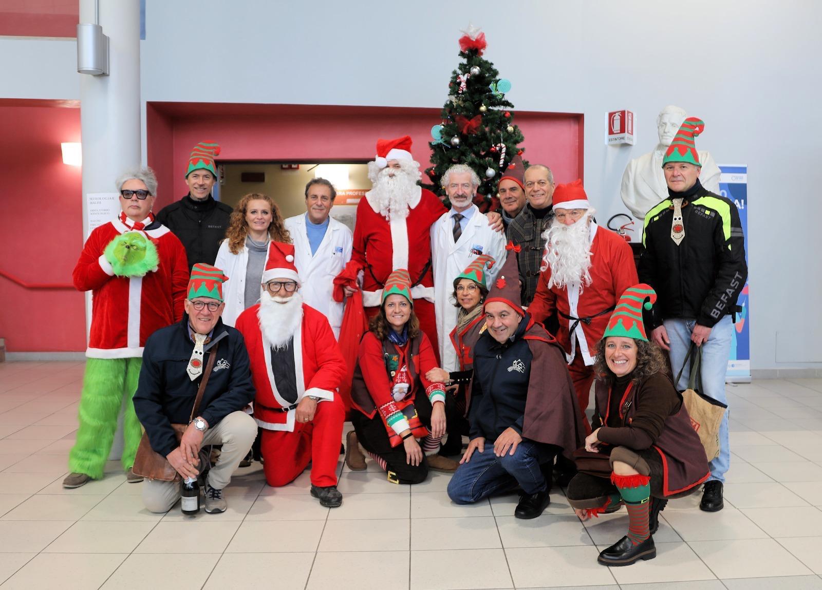 Pontedera, 22 dicembre 2025. Una mattinata di festa e solidarietà ha portato, sabato scorso, 20 dicembre, il calore del Natale nel reparto di pediatria dell'ospedale di Pontedera, grazie alla visita di una rappresentanza della contrada di Bientina e dei Babbi Natale e degli elfi del Vespa Club di Pontedera, arrivati per consegnare doni ai bambini ricoverati e al piccoli pazienti del pronto soccorso pediatrico.
