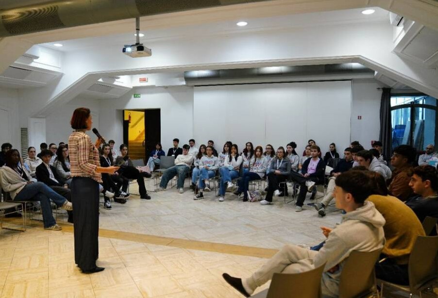 In allegato un’immagine di un incontro della responsabile del Consultorio di Lucca Patrizia Fistesmaire con un gruppo di giovani