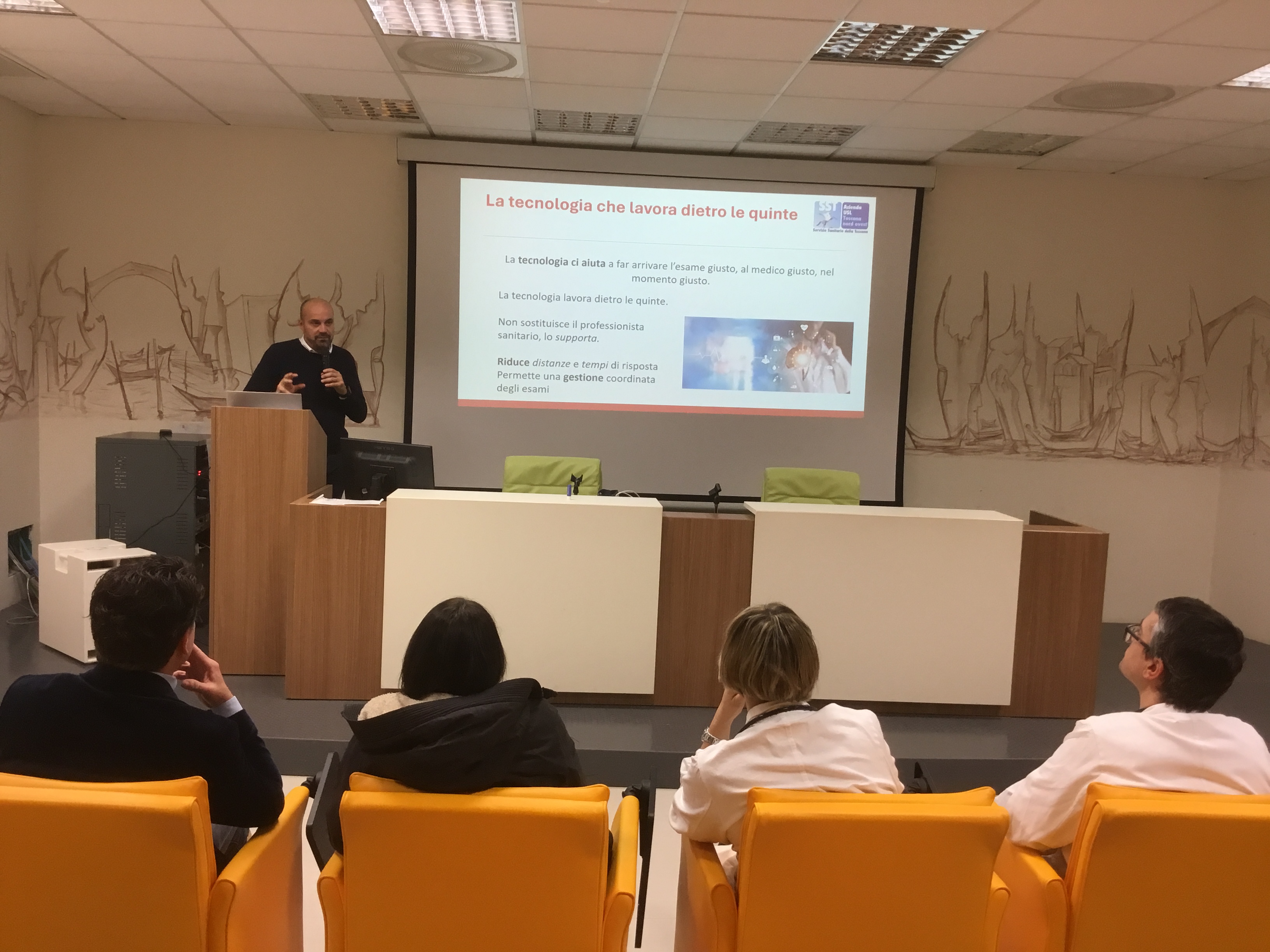 Il direttore della struttura aziendale Transizione al digitale Alessandro Iala e Riccardo Orsini, titolare di incarico di funzione organizzativa sul coordinamento aziendale per lo sviluppo della digitalizzazione, hanno poi presentato nello specifico i percorsi digitalizzati sul territorio aziendale, che permettono di adattare lo strumento informatico alle esperienze dei clinici senza stravolgere gli attuali percorsi clinico-assistenziali ma anzi andando a favorirli e ottimizzarli.