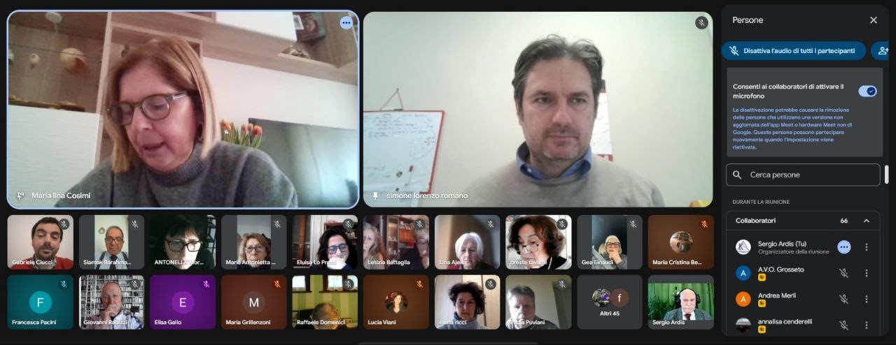 La coordinatrice del Comitato aziendale di Partecipazione dell’Azienda sanitaria Maria Lina Cosimi, rivolgendosi agli 83 partecipanti collegati, è intervenuta in apertura dei lavori per sottolineare come spesso il volontariato svolga una funzione vicaria per alcuni servizi. Ha portato come esempio concreto l’esperienza dell’AVO nell’ospedale di Livorno, richiamando anche una testimonianza personale sull’utilità del servizio di accoglienza svolto dai volontari, in particolare al CORD. Oggi i volontari AVO a Livorno svolgono un ruolo rilevante nell’accoglienza dei cittadini proprio all’ingresso di questa struttura che per la sua ampiezza e complessità implica alcune difficoltà di orientamento. Grazie alla loro presenza l’ospedale diventa più accessibile per tutti.