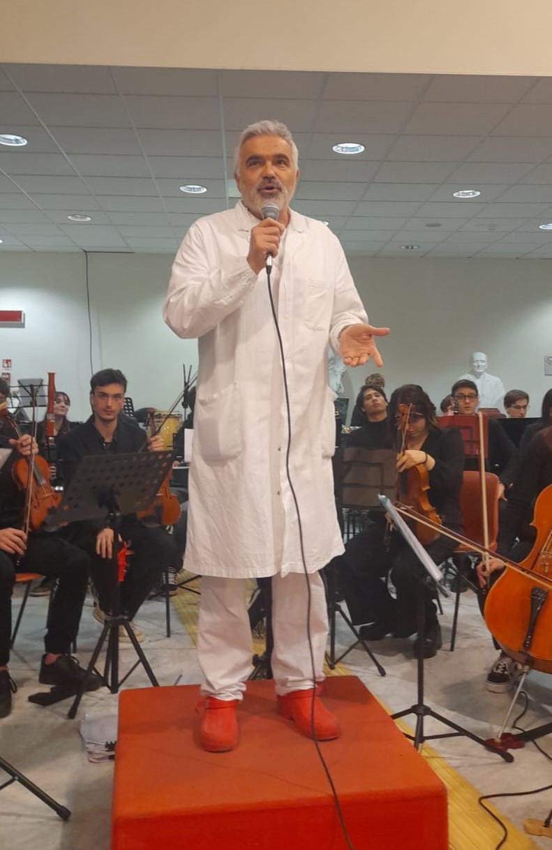 In allegato un’immagine del dottor Mambrini a un precedente concerto degli allievi del Liceo Palma
