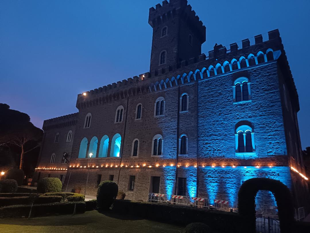 Le giornate si sono concluse con la suggestiva illuminazione di blu del Castello Pasquini, simbolo di sensibilità e attenzione verso il tema dell’autismo.