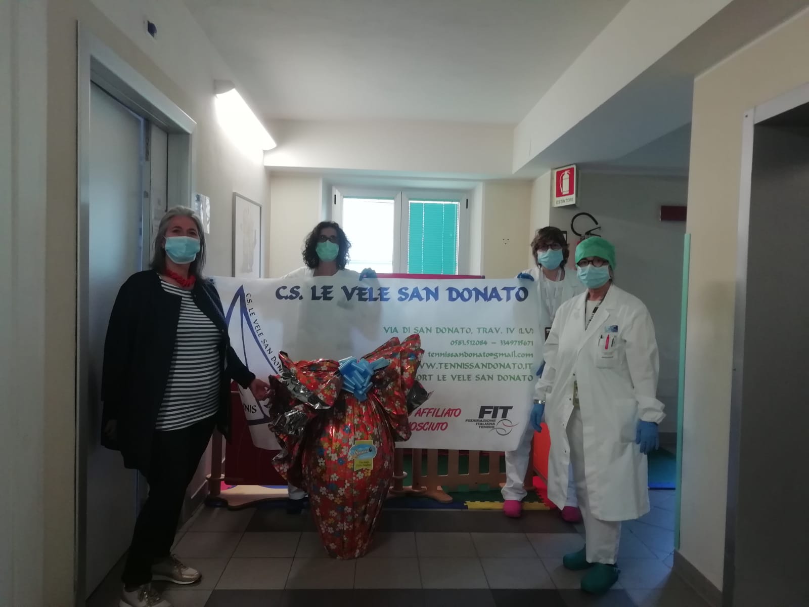 Lucca, 10 aprile 2020. La direzione sanitaria degli ospedali della Valle del Serchio, rappresentata dalla dottoressa Michela Maielli e dalla dottoressa Romana Lombardi, insieme a tutto il personale sanitario, esprime un sincero ringraziamento al Centro Sport Le Vele San Donato - Lucca che quest’anno ha voluto donare un grande uovo di Pasqua al reparto di Pediatria dell’ospedale di Barga. Ai ringraziamenti si unisce anche la dottoressa Laura Crespin responsabile del reparto pediatrico.