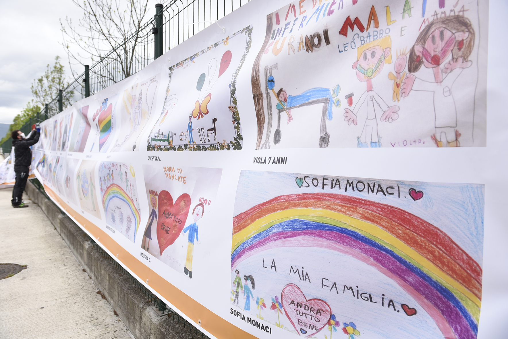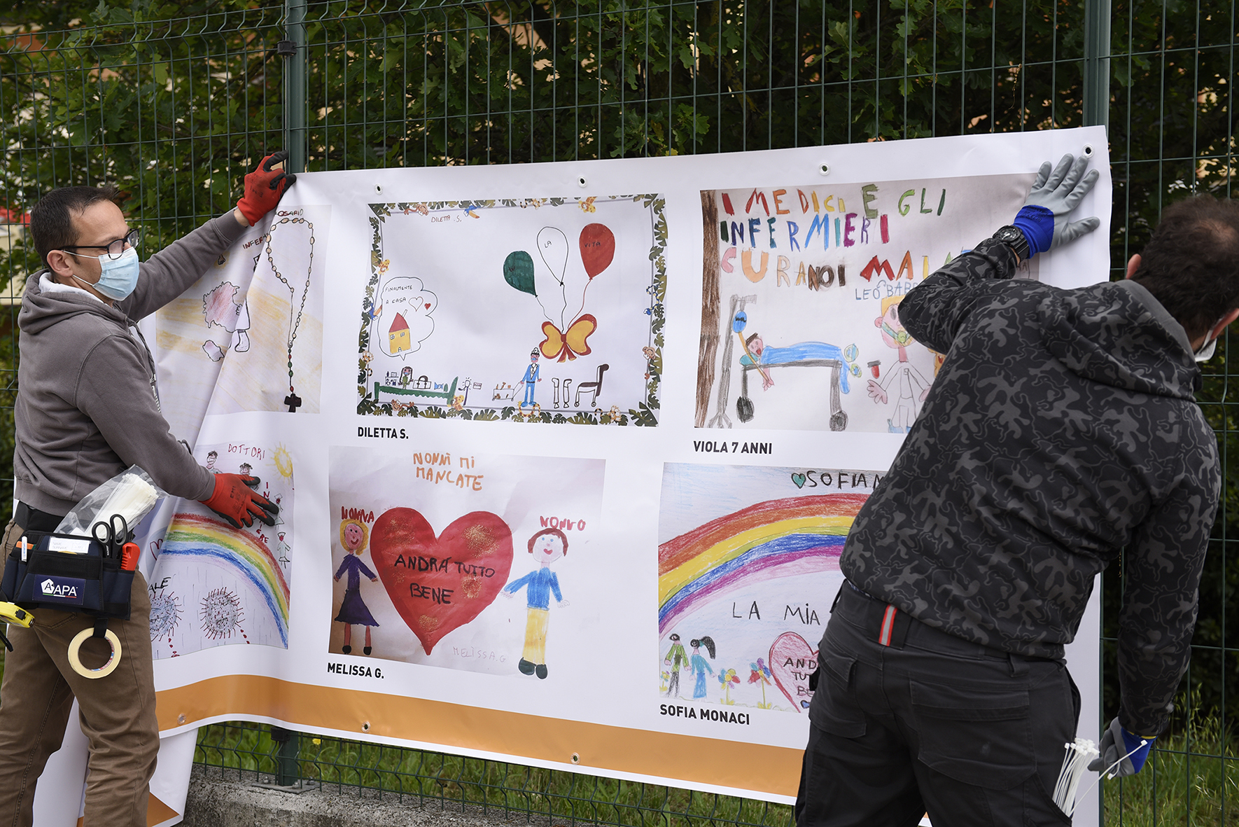 Presente al momento dell'affissione dello striscione la direttrice dell'ospedale di Lucca Michela Maielli, che ha espresso, anche a nome di tutto il personale, un sincero ringraziamento agli ideatori del progetto ed ai ragazzi che hanno realizzato i disegni, oltre che a tutta la comunità lucchese che sta quotidianamente facendo sentire la propria vicinanza agli operatori con donazioni in denaro e di materiale di ogni tipo. Una straordinaria generosità che è stata di grande aiuto e supporto per il personale impegnato in prima linea nella battaglia contro il Covid-19.