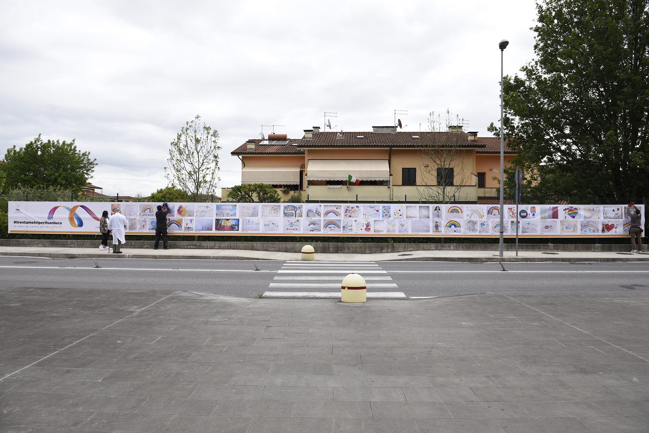 L'iniziativa è stata chiamata #trentametriperilsanluca ed è nata dalla ditta “IdeaPrint”, che ha raccolto 60 disegni di bambini, ragazzi e artisti indipendenti del territorio provinciale che hanno partecipato all'omonimo evento organizzato su Facebook dall'11 al 25 aprile 2020. Si tratta quindi della conclusione di un evento di solidarietà che ha registrato migliaia di visualizzazioni.