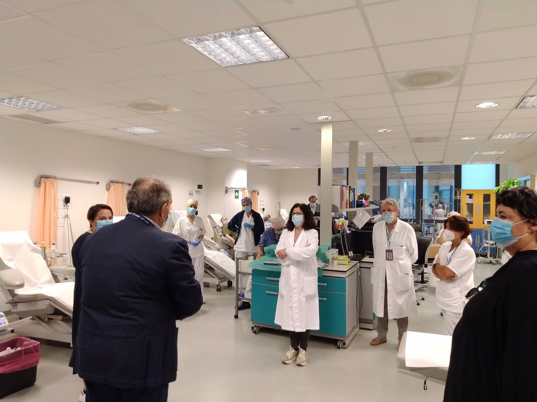La consegna ufficiale è avvenuta questa mattina 20 maggio) alla presenza di molti medici dei due servizi: la direttrice Rosaria Bonini, con Francesca Pacini ed altre operatrici per il Centro Trasfusionale, e, per il DH Oncologico, Valentina Grisanti, con la direttrice di Oncologia Editta Baldini e gli altri medici Lucia Tanganelli e Simona Giovannelli.