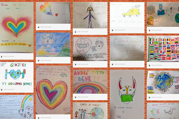 In allegato due immagini con i lavori dei bambini e qui di seguito il link al video che presenta tutti i disegni inviati al personale del “San Luca” https://youtu.be/dYvKFq3qbC0
