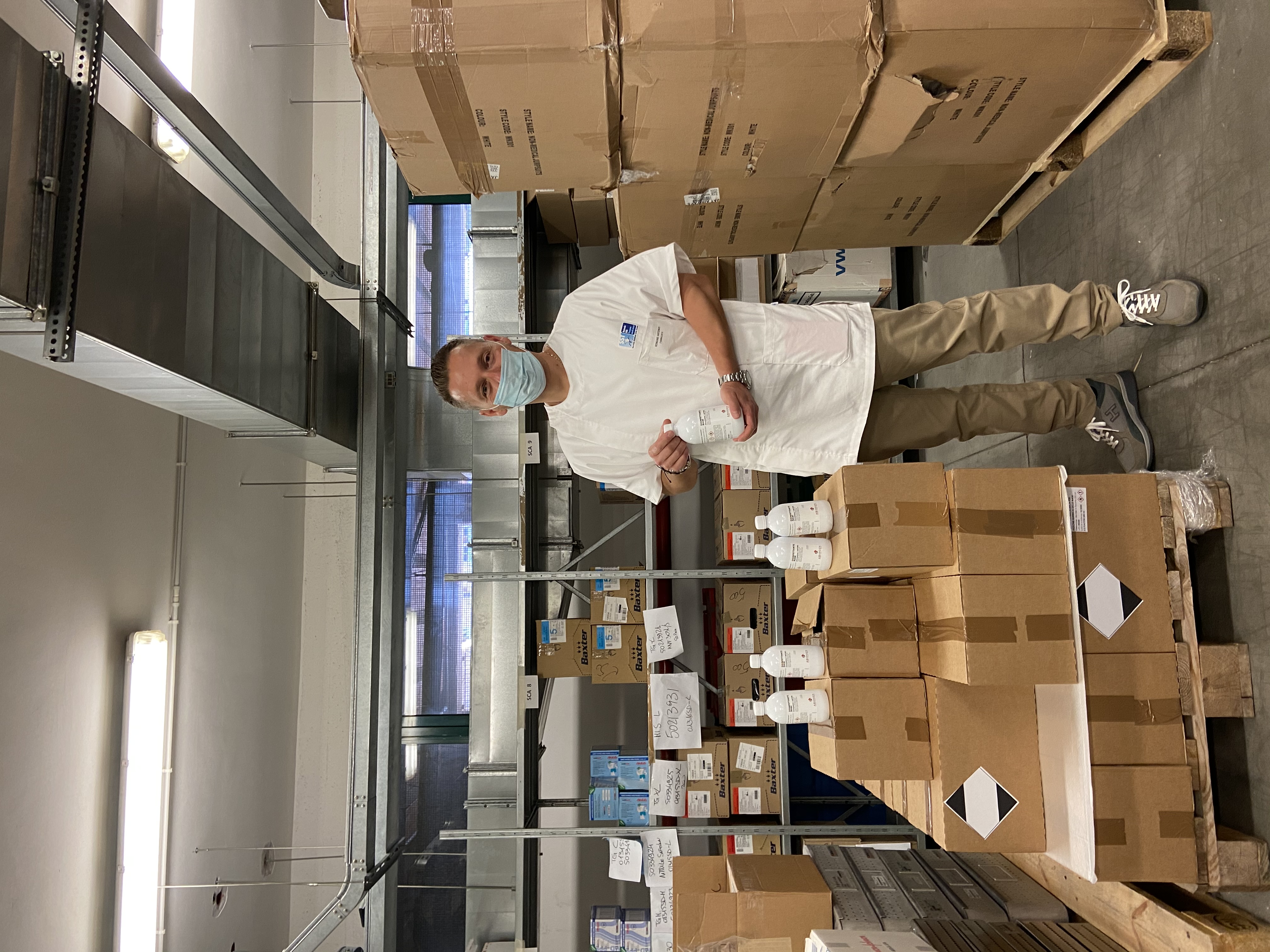 Nella FOTO Antonio Romano, incaricato di seguire gli approvvigionamenti e la distribuzione di DPI, dispositivi e disinfettanti per la gestione Covid in tutta la Azienda USL nord ovest, con il materiale donato. (pp)