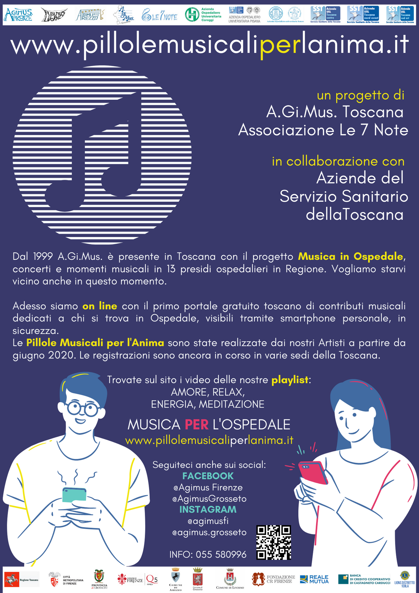 Si tratta di un progetto realizzato nel 1999 da A. Gi. Mus Toscana- Associazione le 7 note, in collaborazione con le Aziende sanitarie della Regione Toscana, per organizzare concerti e momenti musicali nei presidi ospedalieri del territorio regionale.
