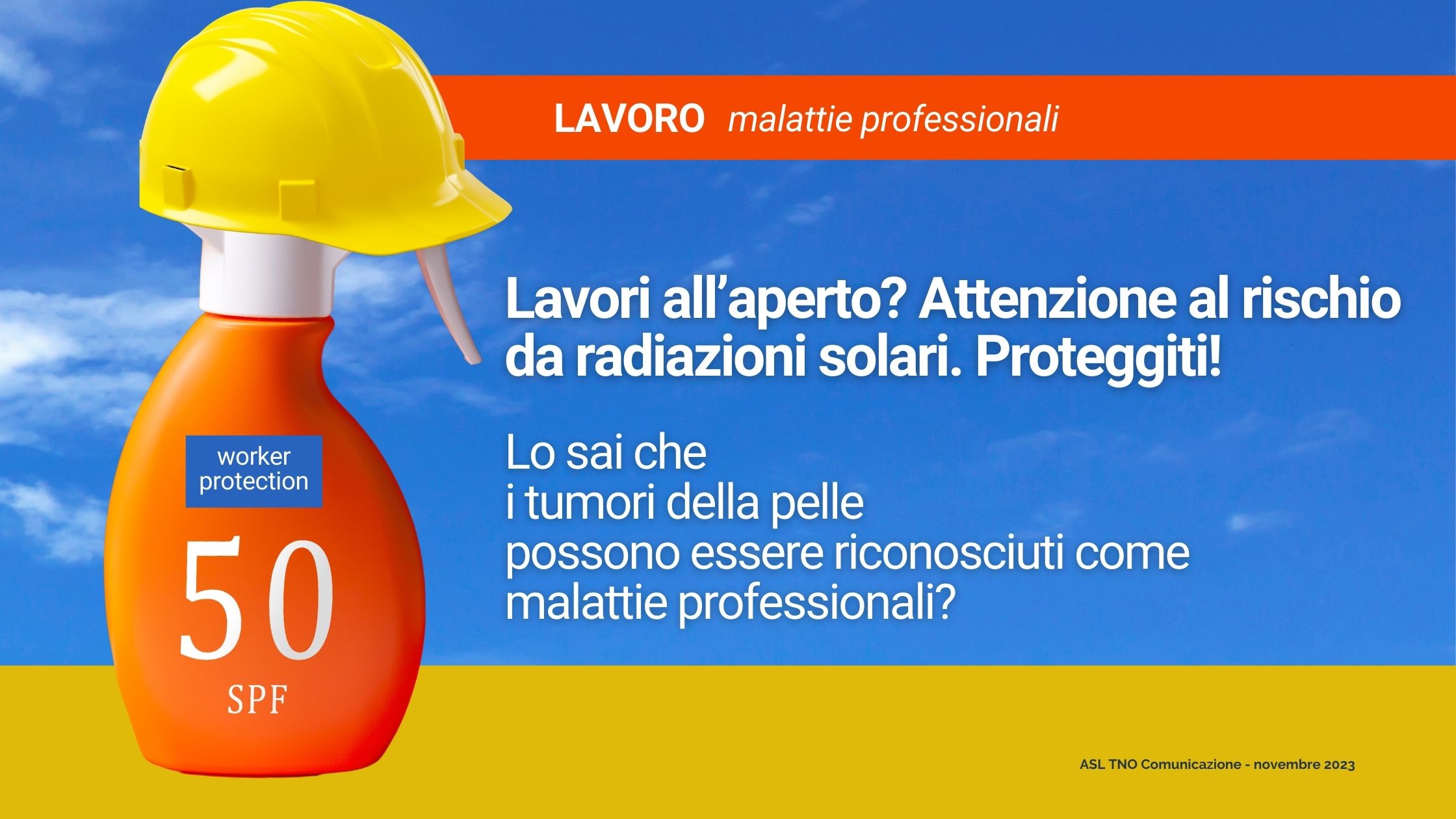 Alcune di queste malattie sono poco conosciute e quindi poco segnalate all’INAIL. Tra queste i tumori della pelle e le lesioni precancerose (cheratosi attiniche) da esposizione a radiazione ultravioletta naturale (radiazione solare) delle parti del corpo esposte alla luce diretta nei lavoratori che si occupano di edilizia civile e stradale, del settore estrattivo, di quello agricolo, del comparto marittimo e balneare, gli addetti alla manutenzione del verde e di altri settori se lavorano all’aperto in maniera continuativa.
